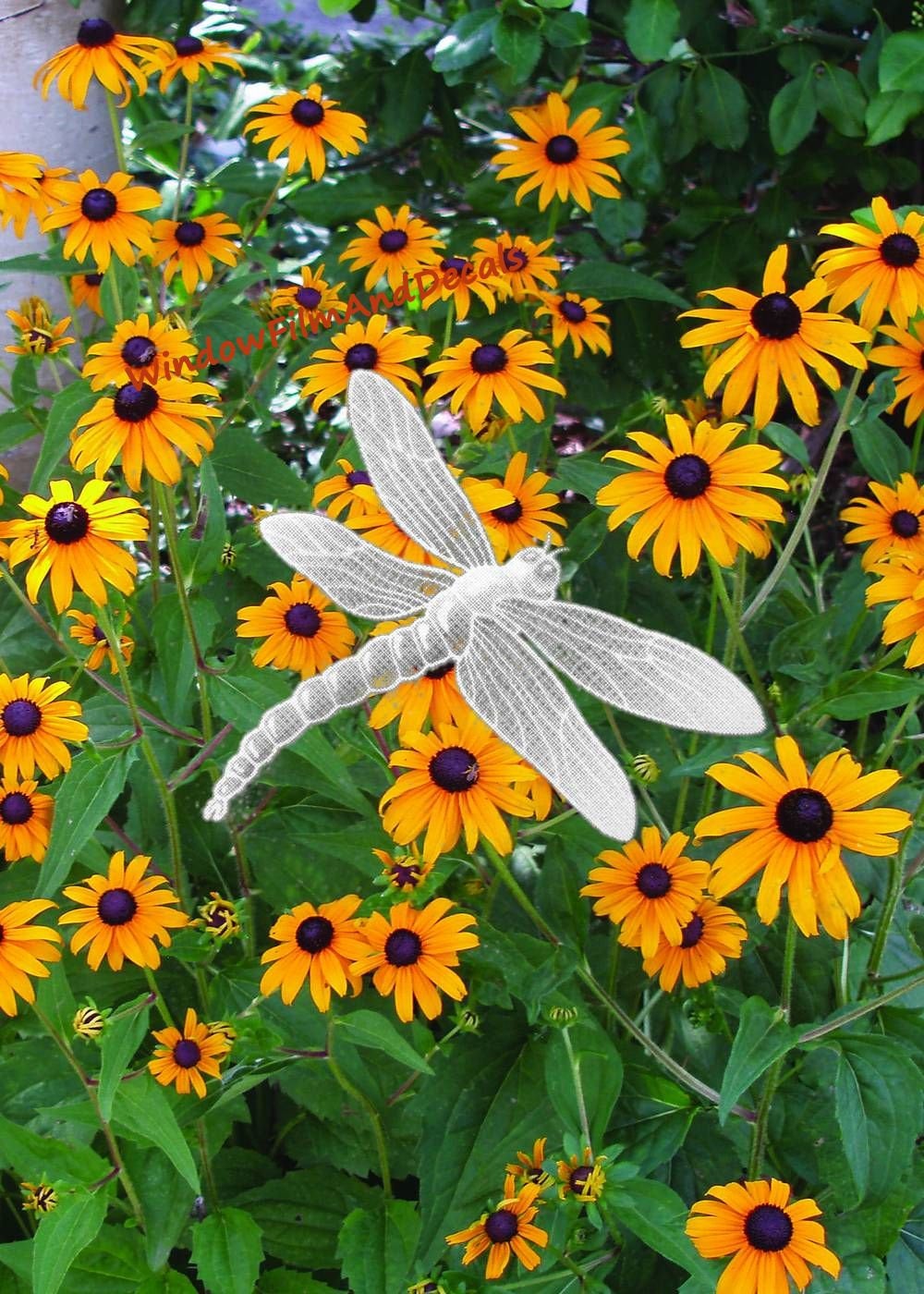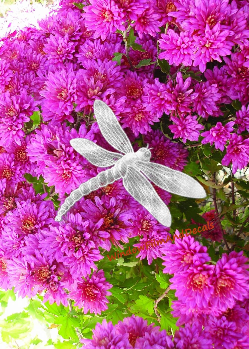 ****Note: This decal is clear oval with a white dragonfly design. There is no other color on this decal. Any color you see in the photos is just the background scenery. This is an oval decal, not square.