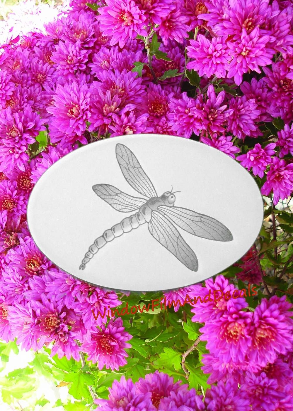 Dragonfly Oval Static Cling Window Decal 6" x 4" - White w/Clear Design