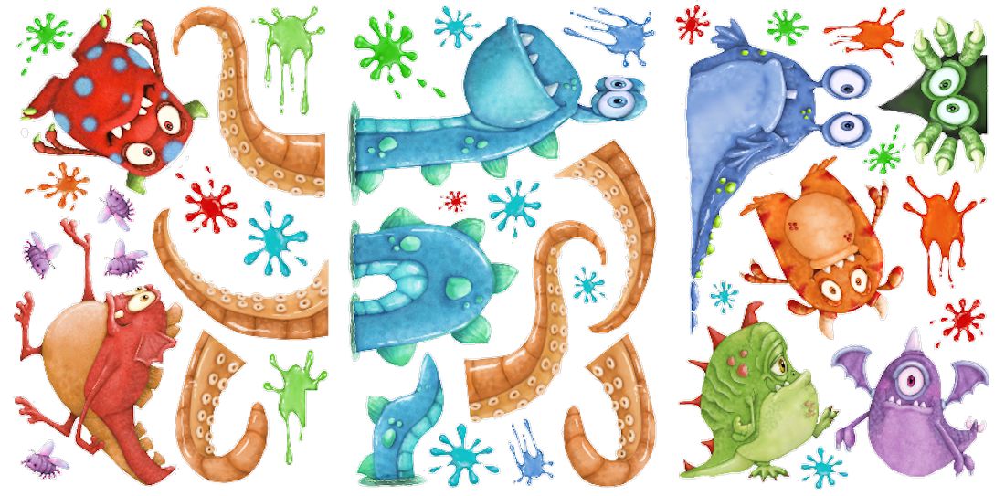 Transform walls into a cute wonderland with monsters with our Monster Splat Peel and Stick Wall Decals.