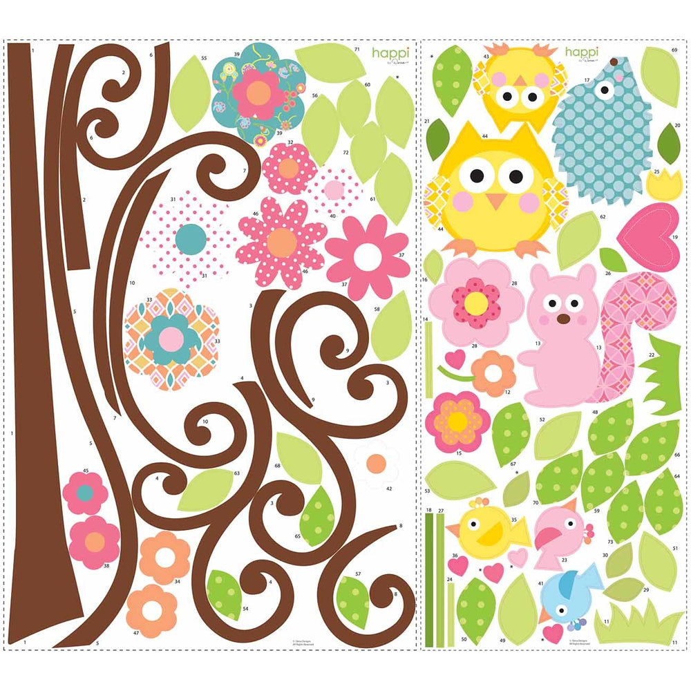 Both sophisticated and fun, you'll love livening up your walls with this tree! Featuring funky, curly branches, brightly-colored flowers, and some friendly feathered friends, our Scroll Tree is the perfect touch to nurseries, bedrooms, and playrooms. Every element is repositionable, meaning it's easy to move the tree around as you like. No need to worry about getting it perfect on the first try!